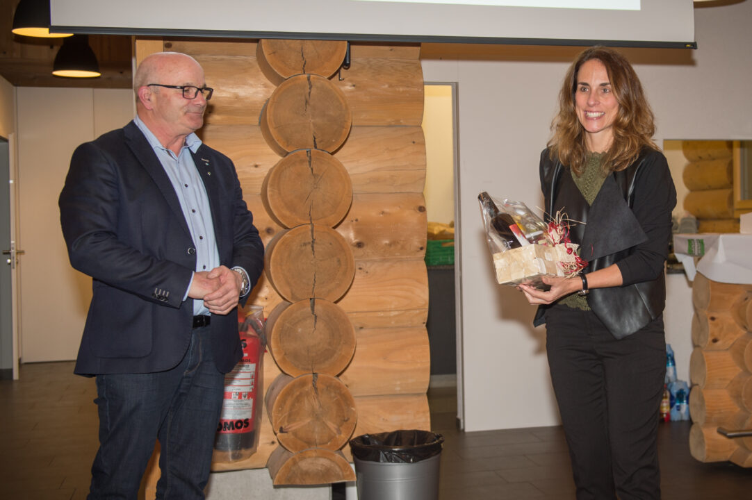 Andy Steinacher bedankte sich im Namen der Bezirkspartei für diesen interessanten Vortrag und überreichte Andrea Mäder ein Fricktaler Körbli.